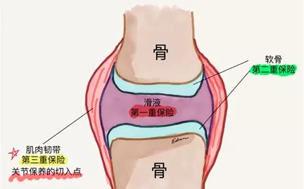 关节由关节囊、关节面和关节腔组成,关节囊是包绕整个关节周围的囊,两端各附着于关节面周围的骨面上。外层为纤维层,富有血管、神经和淋巴管,内层为滑膜。关节面为关节骨所具有的一个比较光滑的骨面,其表面还附有一层关节软骨,它可使两骨接触更加稳固,并可减少运动时的摩擦;透明软骨富有一定的弹性,因此可减缓运动时两骨之间的震荡和冲击。关节腔是由关节囊滑膜层和关节软骨共同组成的密闭腔,内含少量滑液。滑液是透明、微红、蛋清样液体,略成碱性,含透明质酸,润滑性强,是关节软骨、半月板等进行物质交换的媒介,起到加强关节稳固性作用。