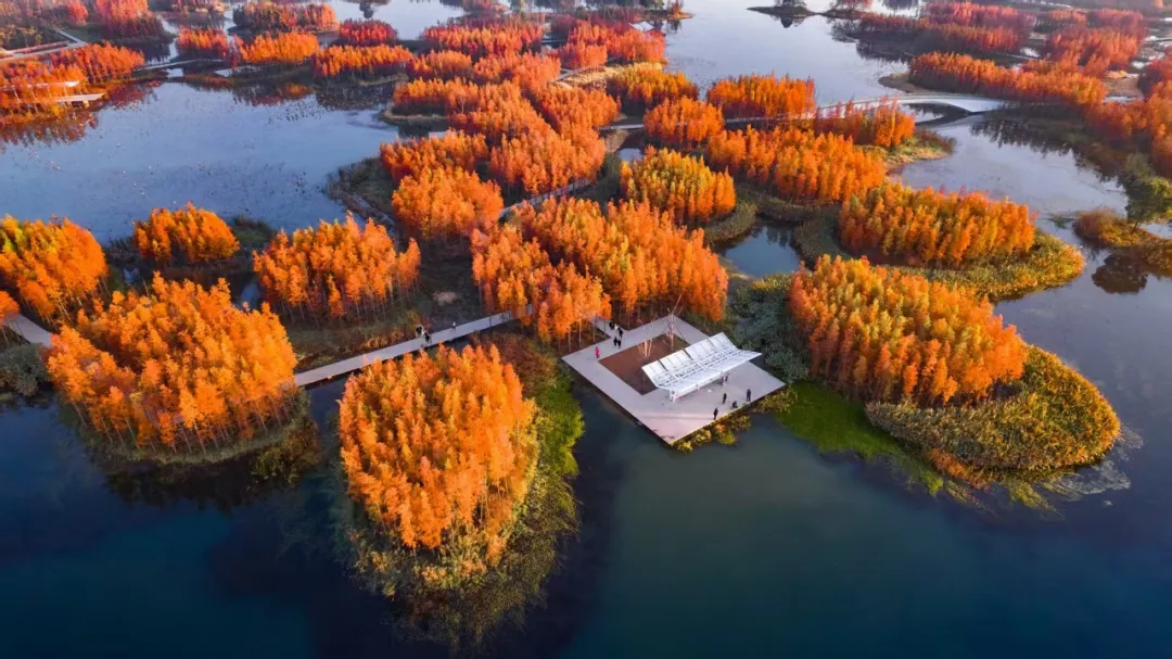 水草繁盛,清流汩汩;漫步栈道,怡然自得。位于鱼尾洲公园北侧的尾水湿地于2025年8月对外开放,与鱼尾洲公园、艾溪湖湿地公园相邻,构成了高新区独特的湖光掠影。